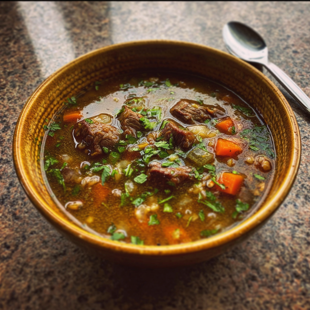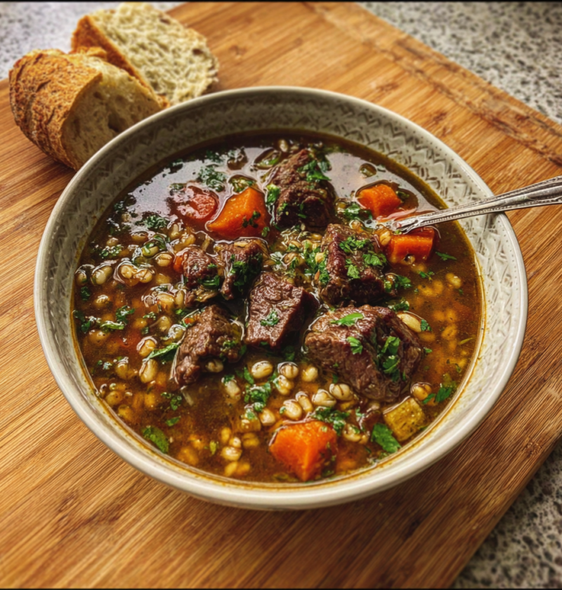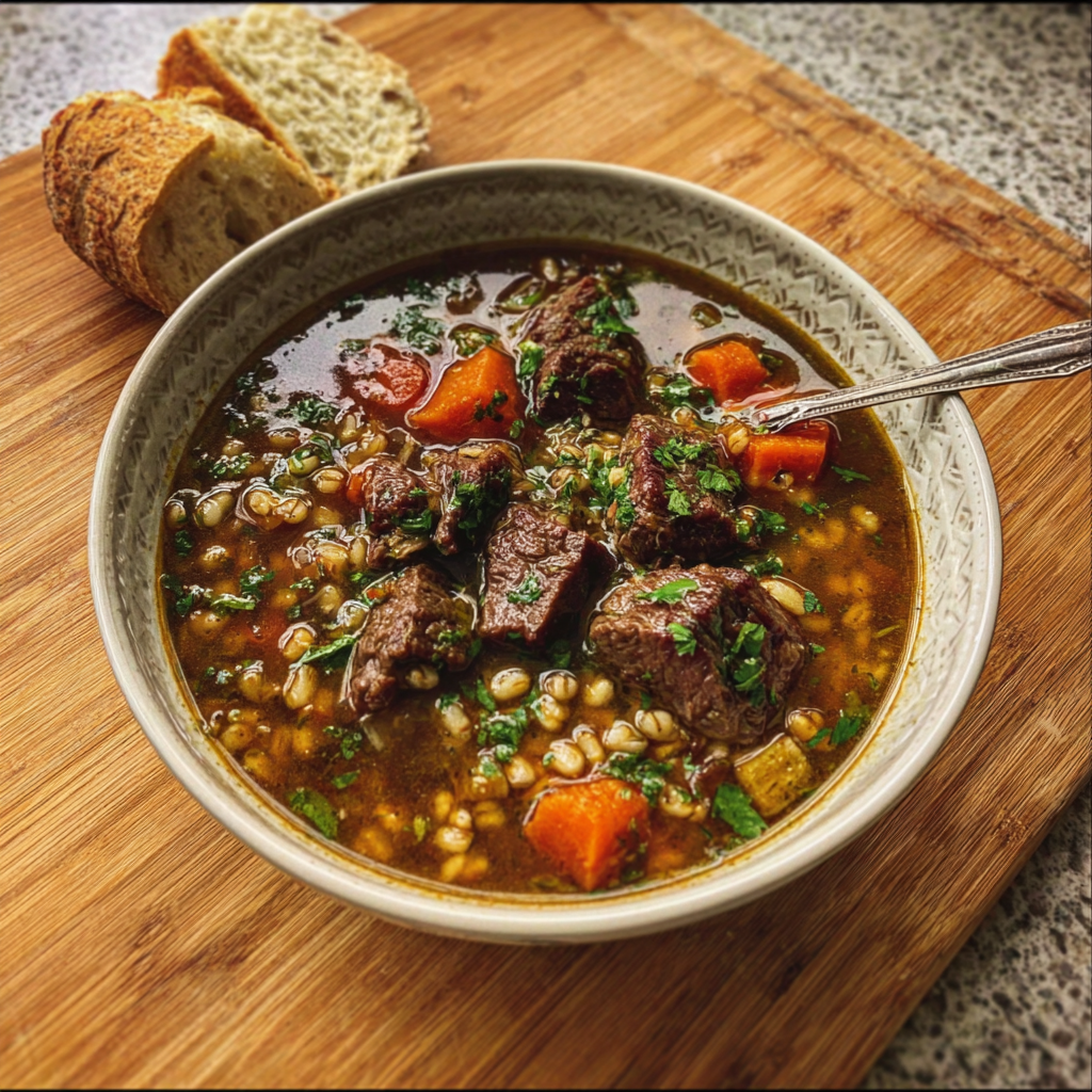 The secret to great flavor is browning the beef first, then letting everything simmer slowly so the barley becomes tender and the broth turns rich and savory. As the soup cooks, the barley releases starches that create a naturally thick, stew-like consistency.