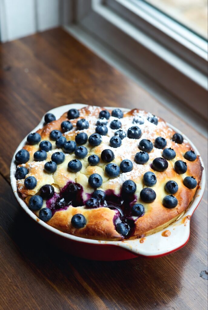 Youโ€™ll whisk together a simple pancake-style batter, fold in blueberries, pour into a baking dish, and bake until puffed and golden. No standing at the stoveโ€”just one pan and the oven.