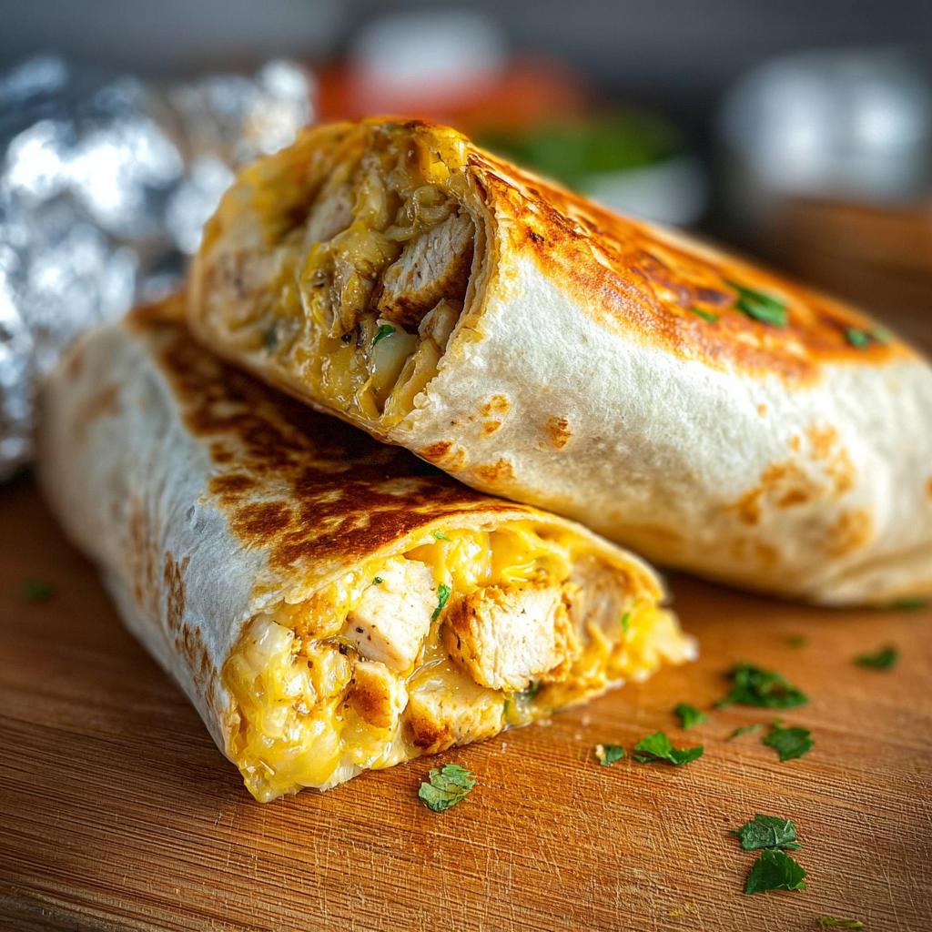 This recipe starts with cooked chicken—grilled, roasted, or even nuggets—and coats it in a creamy garlic sauce. The chicken is then layered with cheese, wrapped in tortillas, and lightly toasted until golden. The result is a warm, melty wrap that’s crisp on the outside and creamy on the inside.