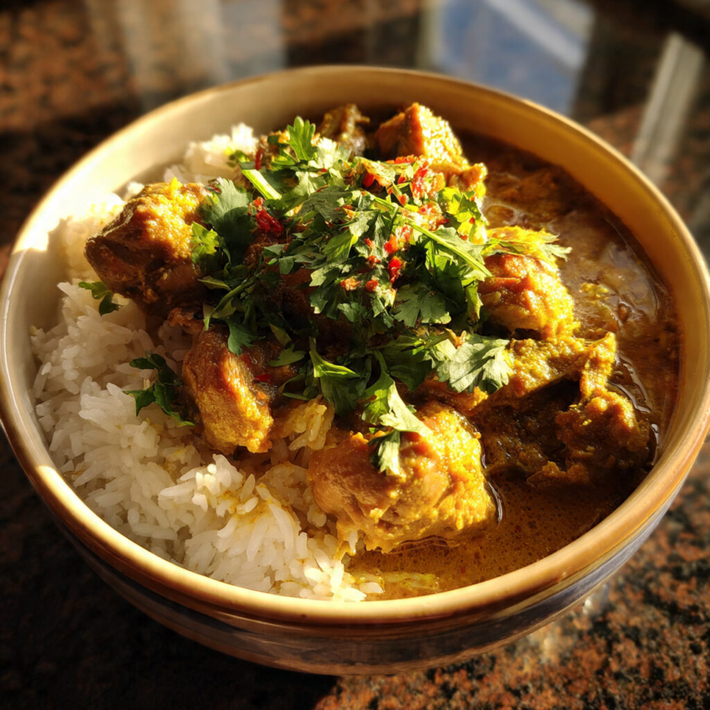 This dish pairs beautifully with rice or bread, making it ideal for family dinners or special occasions. With its creamy texture and aromatic spices, it’s a classic example of a delicious Chicken Curry With Rice meal.