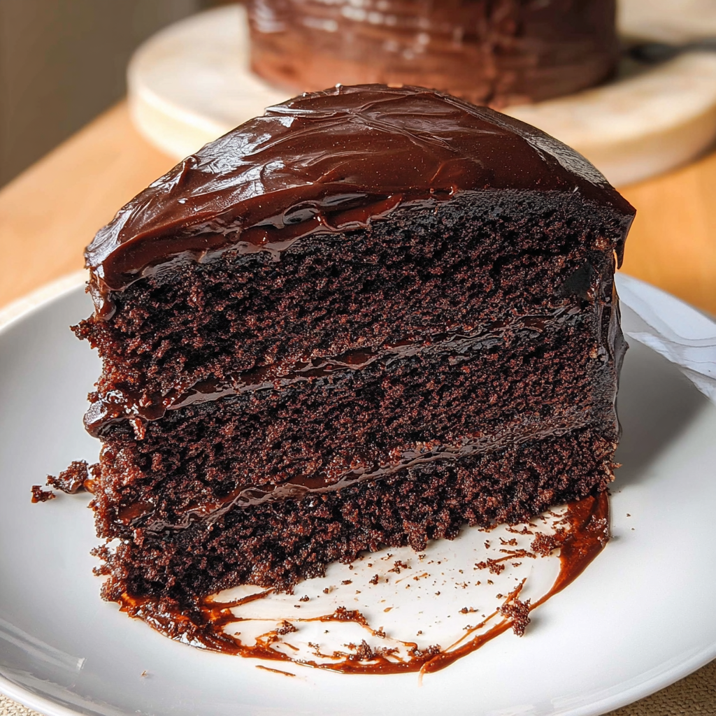 This recipe focuses on moisture and richness. Instead of a light sponge, this cake uses oil, cocoa, and melted chocolate to create a dense and fudgy texture. The process is straightforward: mix the batter, bake until just set, and finish with a smooth chocolate fudge or truffle-style frosting.