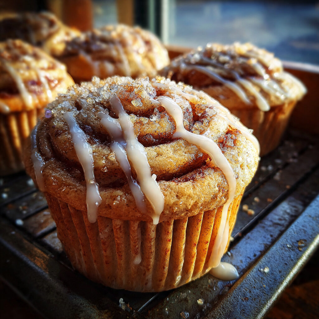 These muffins are best served warm when the glaze is slightly melted and the cinnamon aroma fills the kitchen.