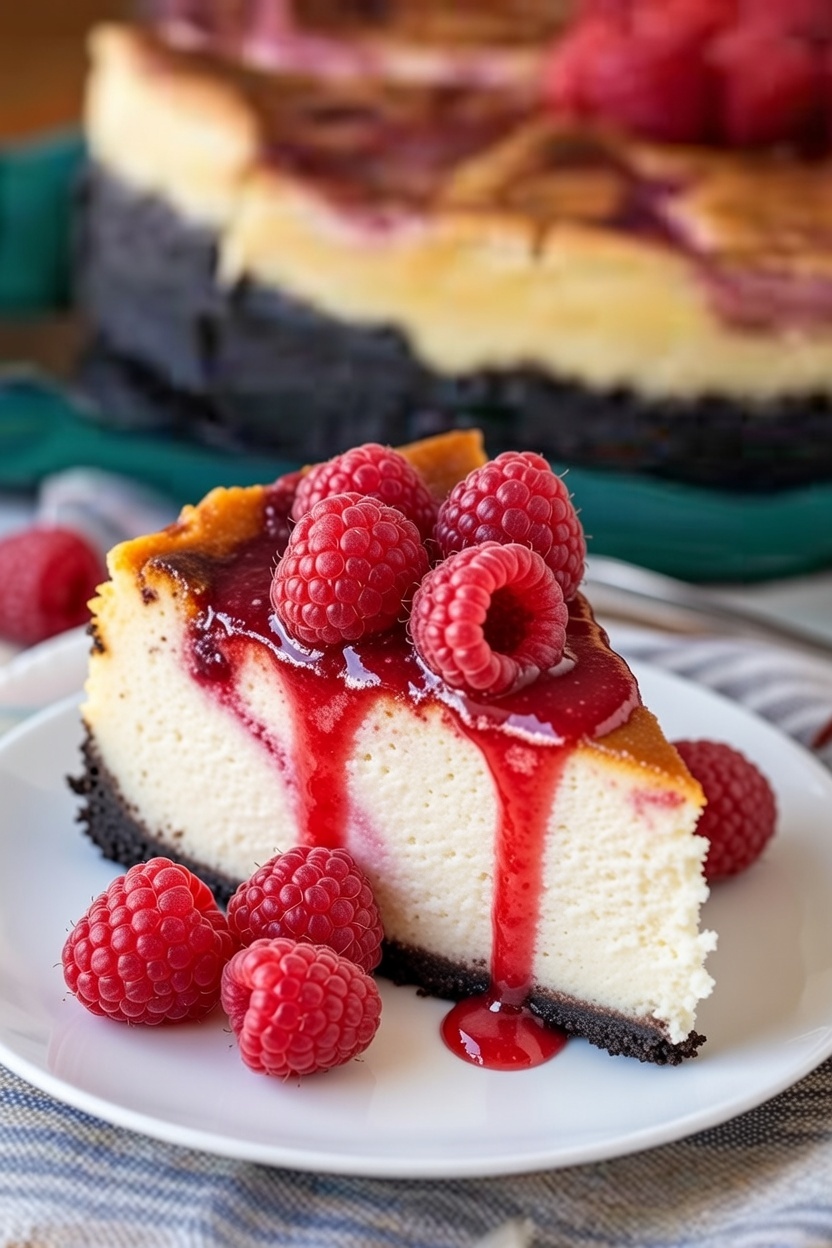 There’s something special about the combination of creamy cheesecake and tart raspberries. The smooth filling melts in your mouth, while the berry swirl adds brightness and color.