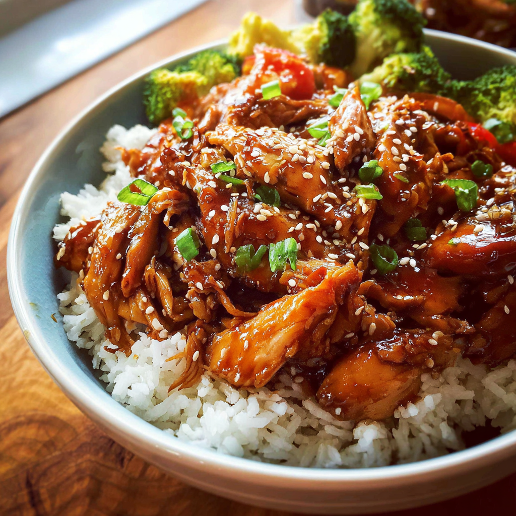 Crockpot Teriyaki Chicken is best served hot over steamed rice or buttered noodles. You can garnish with sesame seeds or chopped green onions for added flavor and presentation. For a complete meal, serve with steamed broccoli, carrots, or snap peas. This dish is versatile, so it can also be used as a filling for wraps or sandwiches, perfect for on the go dinner ideas.