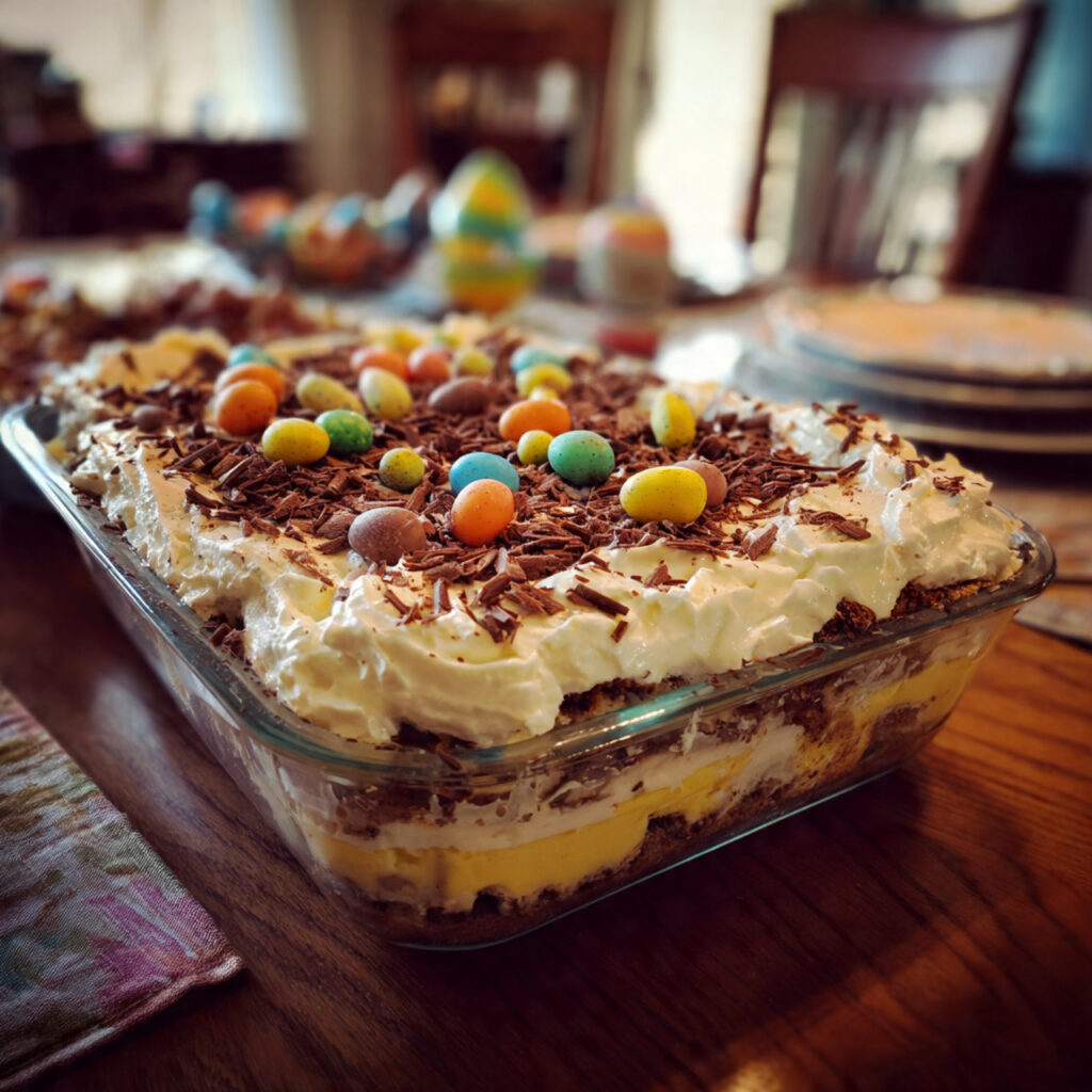 This Easter Dirt Cake Casserole is a fun, festive, and easy dessert that’s perfect for celebrating the holiday. With its creamy layers, chocolate cookie crunch, and colorful toppings, it’s a guaranteed crowd-pleaser.