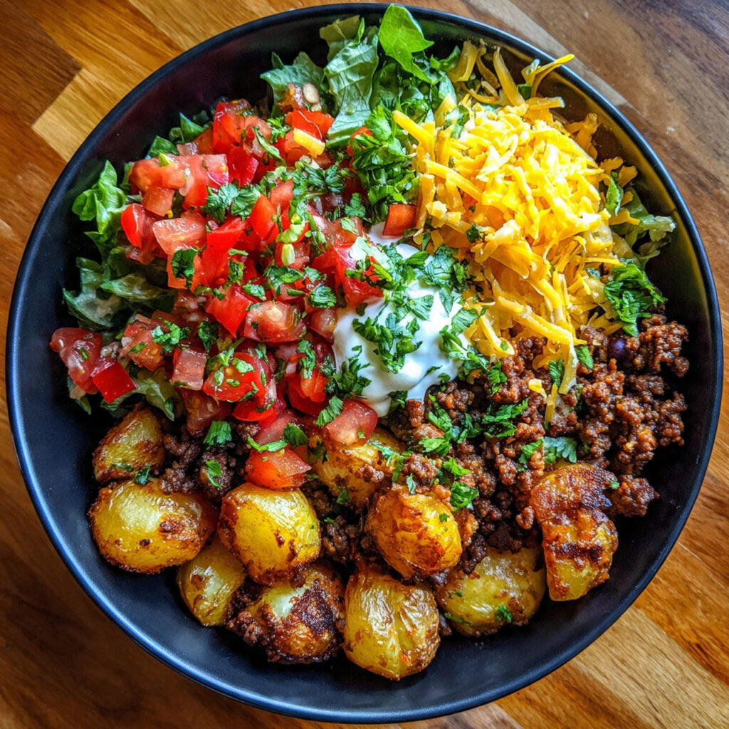 Whether you’re craving meat and potatoes recipes, need lazy dinners for busy weeknights, or want creative ground beef bowl recipes, this taco potato bowl checks every box. It’s comforting, customizable, and ready in under 40 minutes.