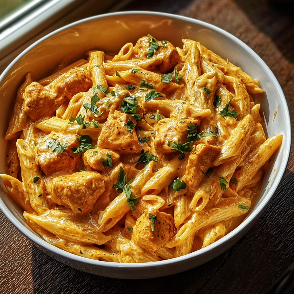 - Add the cooked chicken to the sauce and toss until fully coated.