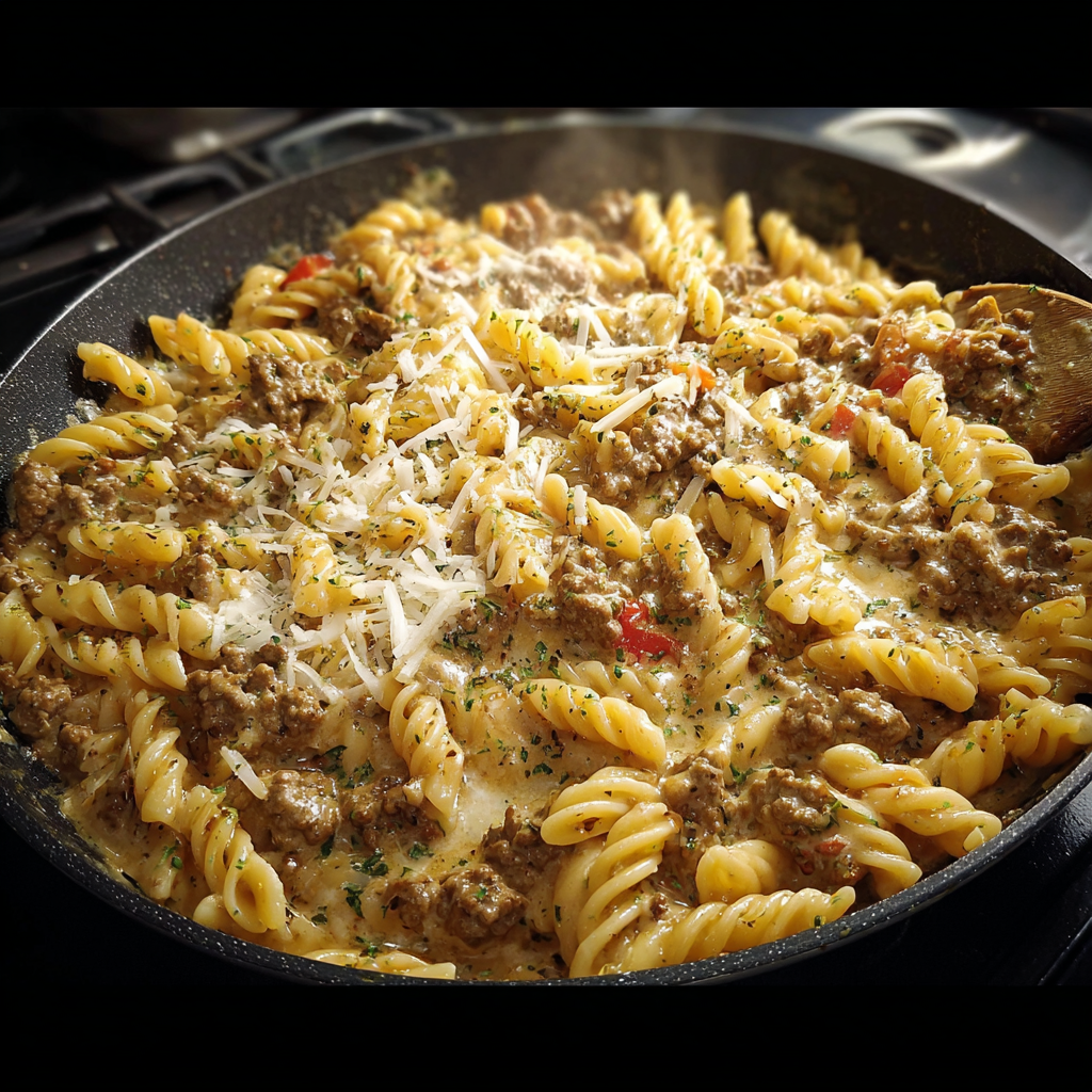 Whether you prepare it as a classic easy creamy ground beef pasta, a stroganoff-inspired skillet, or a simple creamy ground beef Alfredo pasta, this recipe is guaranteed to become a family favorite.