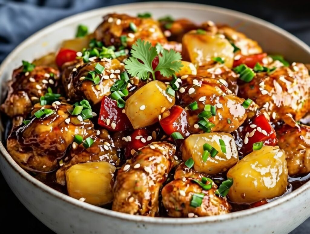 These simple ingredients create that classic pineapple chicken crockpot flavor — sweet, tangy, and slightly savory.